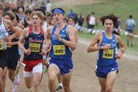 Davis High runners Zev Fox (495) and Nicolas Duquette (494) clear the first mile Saturday at the California State Cross Country Championships in Fresno.